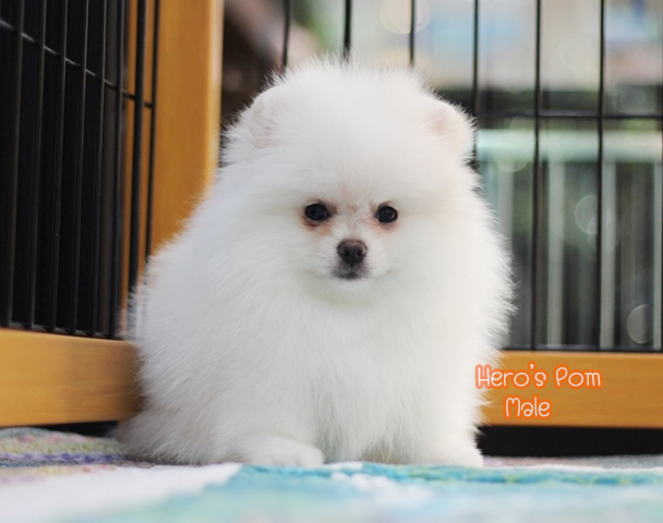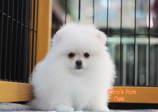 Hero's pom ขายปอมเมอเรเนียน สีขาว เพศผู้ อายุ 2 เดือน สอบถาม Line : @heropom, 0985566777