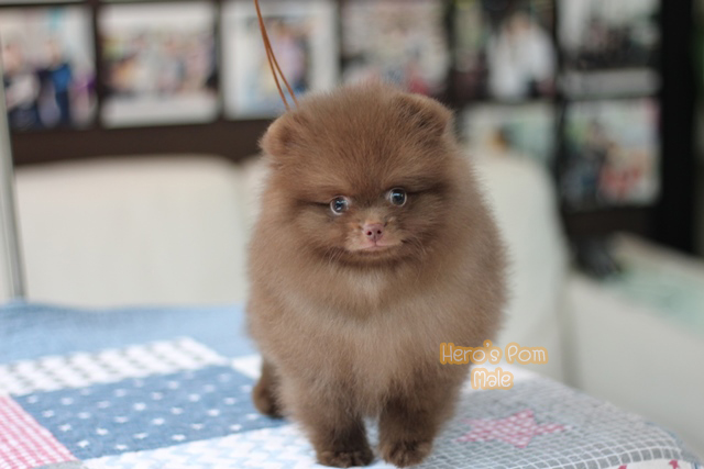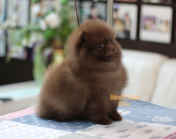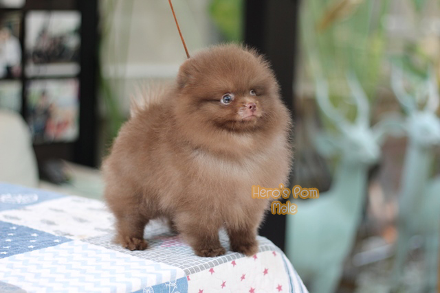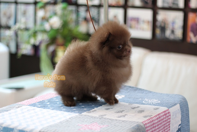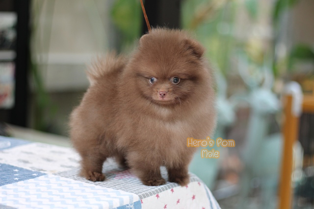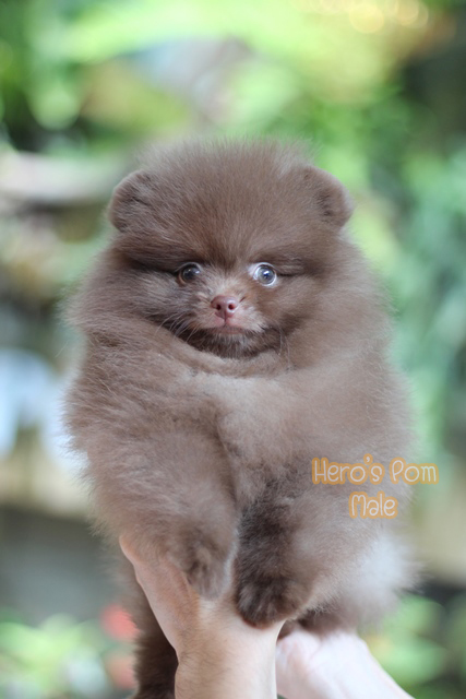 Hero's pom ขายปอมเมอเรเนียน สีช็อกแทน เพศผู้ อายุ 2 เดือน สอบถาม Line : @heropom, 0985566777