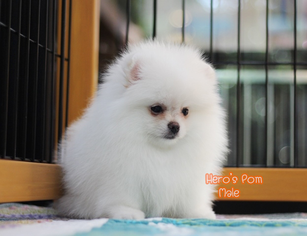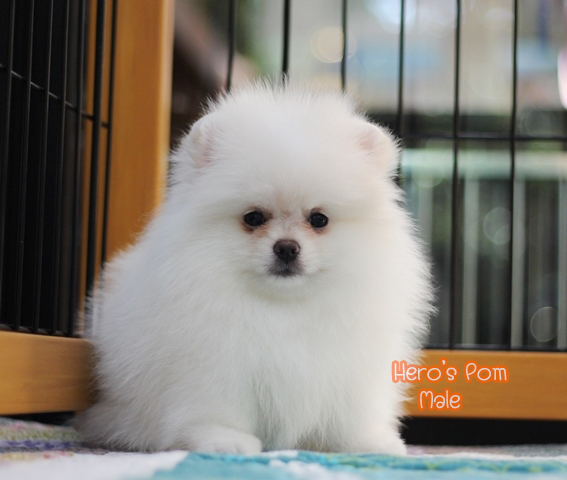 Hero's pom ขายปอมเมอเรเนียน สีขาว เพศผู้ อายุ 2 เดือน สอบถาม Line : @heropom, 0985566777