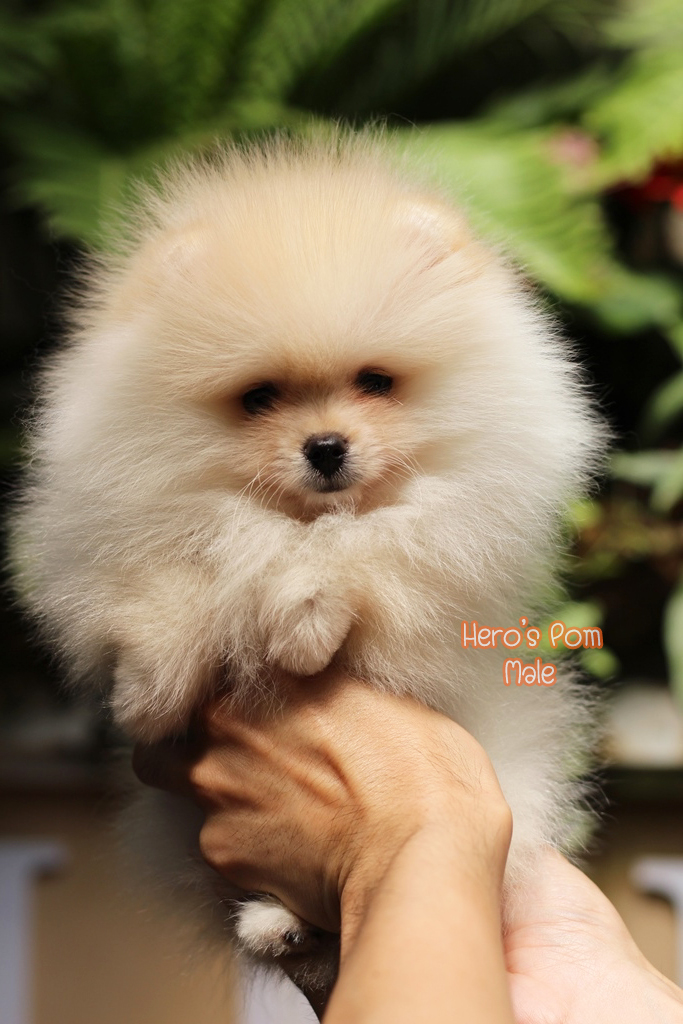 Hero's pom ขายปอมเมอเรเนียน สีครีม เพศผู้ อายุ 2 เดือน สอบถาม Line : @heropom, 0985566777
