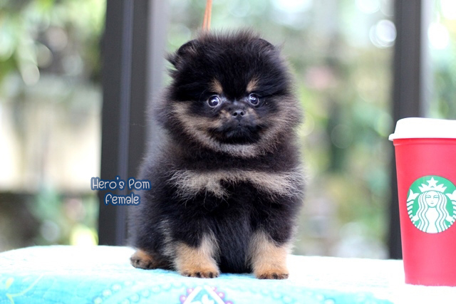 Hero's pom ขายปอมเมอเรเนียน สีแบล็คแทน เพศเมีย อายุ 2 เดือน สอบถาม Line : @heropom, 0985566777