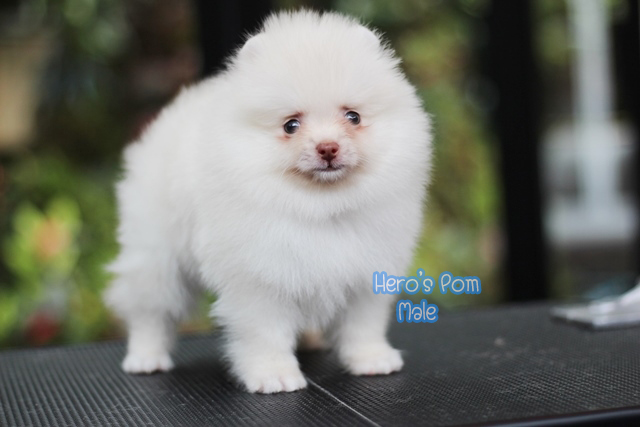 Hero's pom ขายปอมเมอเรเนียน สีขาว เพศผู้ อายุ 2 เดือน สอบถาม Line : @heropom, 0985566777