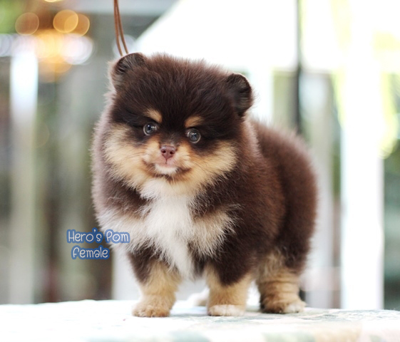 Hero's pom ขายปอมเมอเรเนียน สีช็อกแทน เพศผู้ อายุ 2 เดือน สอบถาม Line : @heropom, 0985566777
