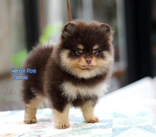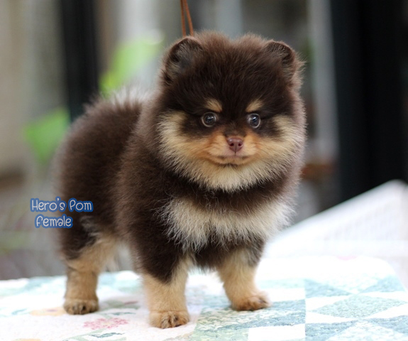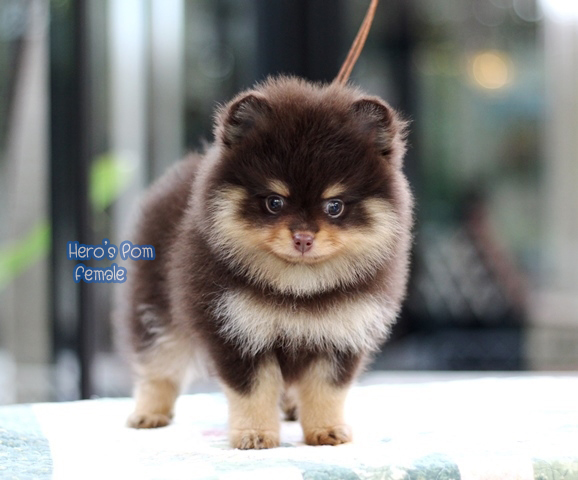 Hero's pom ขายปอมเมอเรเนียน สีช็อกแทน เพศเมีย อายุ 2 เดือน สอบถาม Line : @heropom, 0985566777