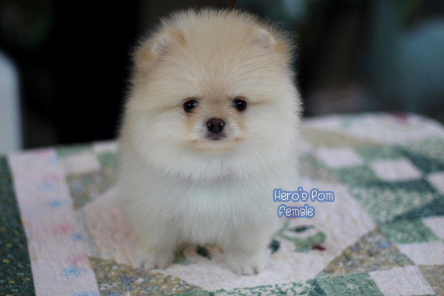 Hero's pom ขายปอมเมอเรเนียน สีครีม เพศเมียอายุ 2 เดือน สอบถาม Line : @heropom, 0985566777