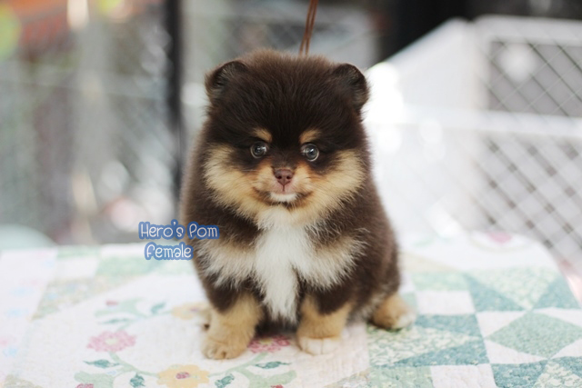 Hero's pom ขายปอมเมอเรเนียน สีช็อกแทน เพศเมีย อายุ 2 เดือน สอบถาม Line : @heropom, 0985566777