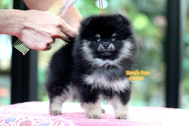 Hero's pom ขายปอมเมอเรเนียน สีแบล็คแทน เพศเมีย อายุ 2 เดือน สอบถาม Line : @heropom, 0985566777