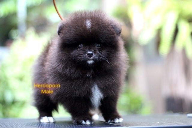 Hero's pom ขายปอมเมอเรเนียน สีดำ เพศผู้ อายุ 2 เดือน สอบถาม Line : @heropom, 0985566777