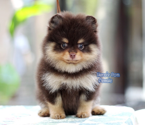 Hero's pom ขายปอมเมอเรเนียน สีช็อกแทน เพศเมีย อายุ 2 เดือน สอบถาม Line : @heropom, 0985566777