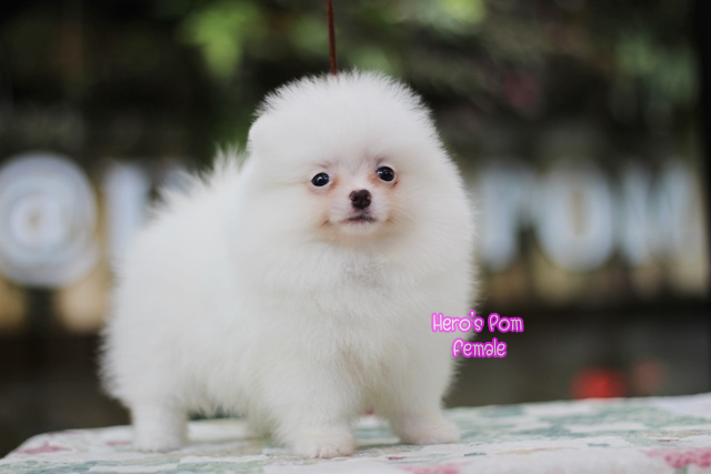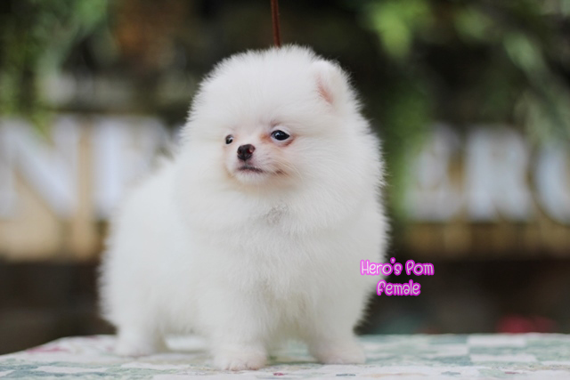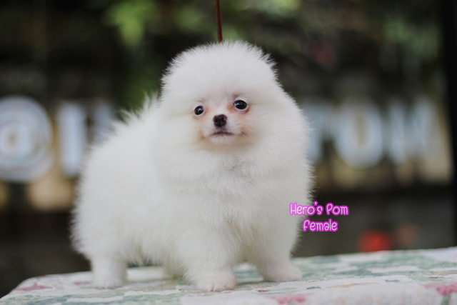 Hero's pom ขายปอมเมอเรเนียน สีขาว เพศเมีย อายุ 2 เดือน สอบถาม Line : @heropom, 0985566777