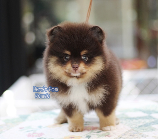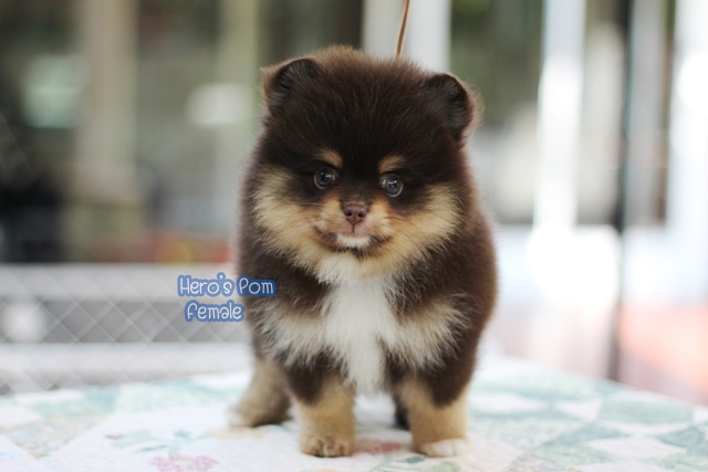 Hero's pom ขายปอมเมอเรเนียน สีช็อกแทน เพศเมีย อายุ 2 เดือน สอบถาม Line : @heropom, 0985566777