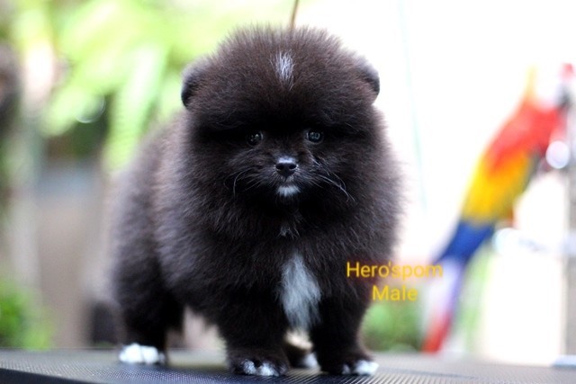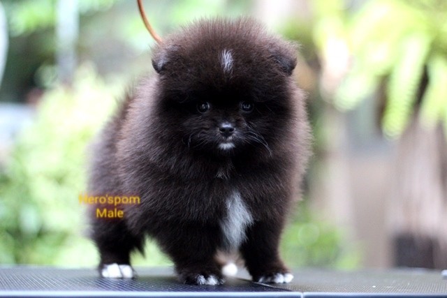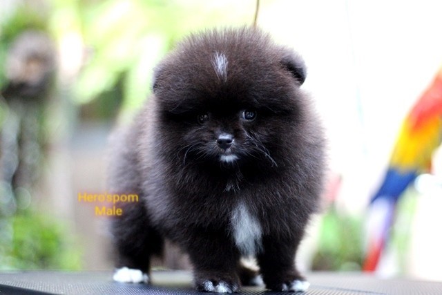 Hero's pom ขายปอมเมอเรเนียน สีดำ เพศผู้ อายุ 2 เดือน สอบถาม Line : @heropom, 0985566777