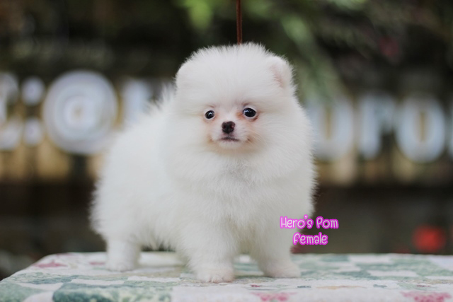 Hero's pom ขายปอมเมอเรเนียน สีขาว เพศเมีย อายุ 2 เดือน สอบถาม Line : @heropom, 0985566777