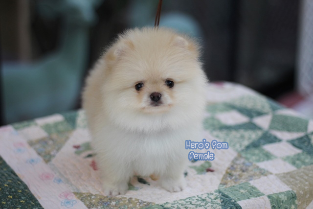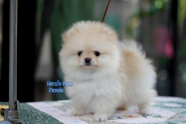 Hero's pom ขายปอมเมอเรเนียน สีครีม เพศเมีย อายุ 2 เดือน สอบถาม Line : @heropom, 0985566777