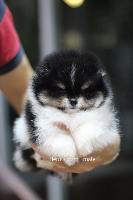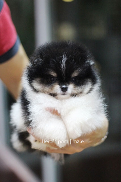 Hero's pom ขายปอมเมอเรเนียน สีขาวดำ เพศผู้ อายุ 2 เดือน สอบถาม Line : @heropom, 0985566777