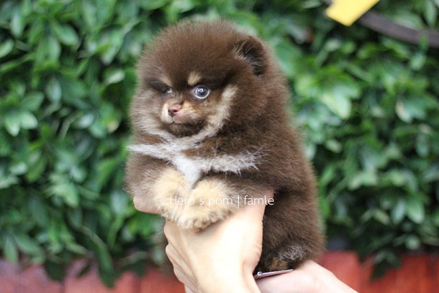 Hero's pom ขายปอมเมอเรเนียน สีช็อกแทน เพศเมีย อายุ 2 เดือน สอบถาม Line : @heropom, 0985566777