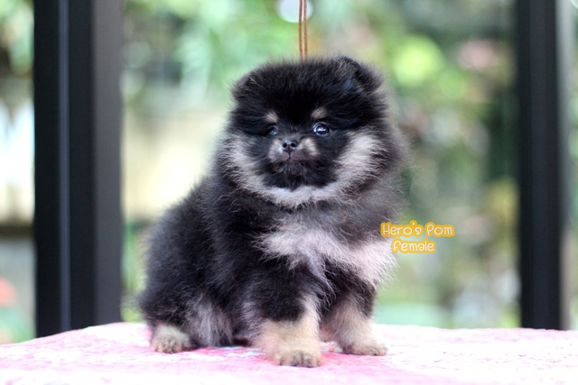 Hero's pom ขายปอมเมอเรเนียน สีแบล็คแทน เพศเมีย อายุ 2 เดือน สอบถาม Line : @heropom, 0985566777