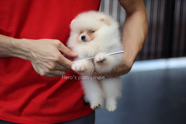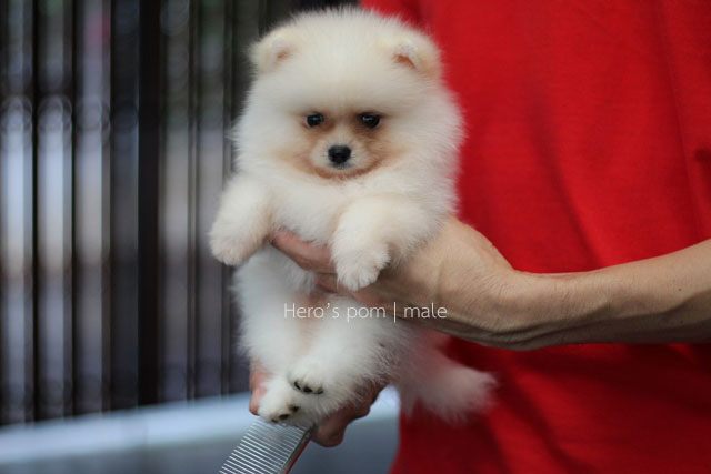 Hero's pom ขายปอมเมอเรเนียน สีครีม เพศผู้ อายุ 2 เดือน สอบถาม Line : @heropom, 0985566777
