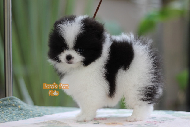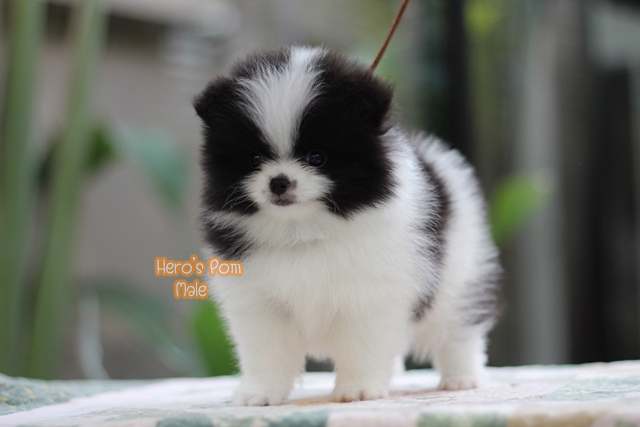 Hero's pom ขายปอมเมอเรเนียน สีขาวดำ เพศผู้ อายุ 2 เดือน สอบถาม Line : @heropom, 0985566777