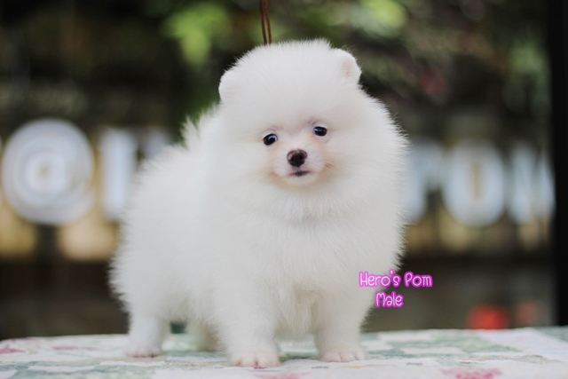 Hero's pom ขายปอมเมอเรเนียน สีขาว เพศผู้ อายุ 2 เดือน สอบถาม Line : @heropom, 0985566777
