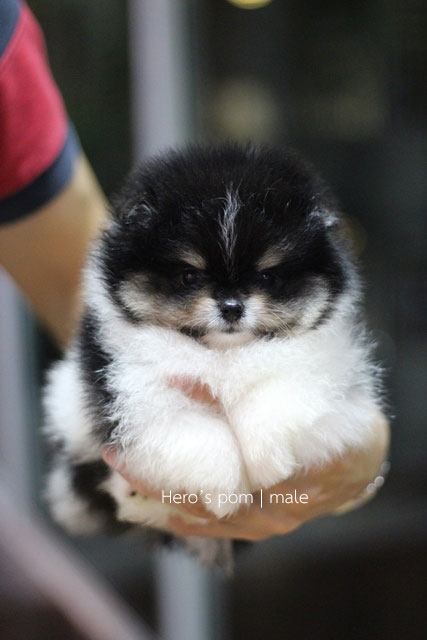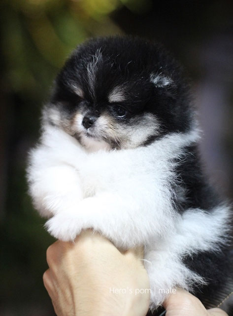 Hero's pom ขายปอมเมอเรเนียน สีขาวดำ เพศผู้ อายุ 2 เดือน สอบถาม Line : @heropom, 0985566777