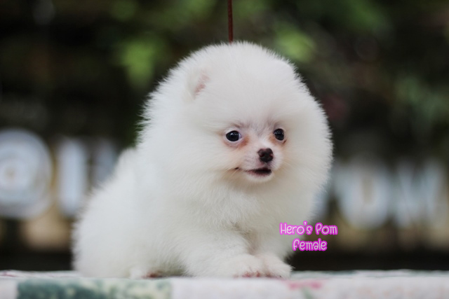 Hero's pom ขายปอมเมอเรเนียน สีขาว เพศผู้ อายุ 2 เดือน สอบถาม Line : @heropom, 0985566777