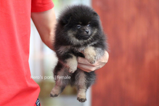 Hero's pom ขายปอมเมอเรเนียน สีแบล็คแทน เพศเมีย อายุ 2 เดือน สอบถาม Line : @heropom, 0985566777