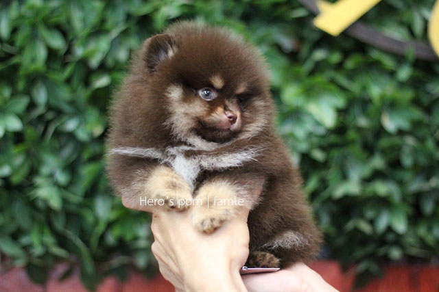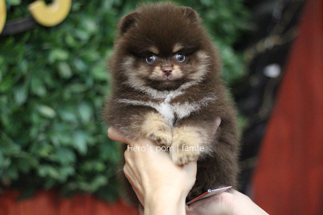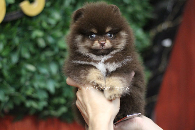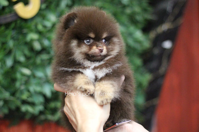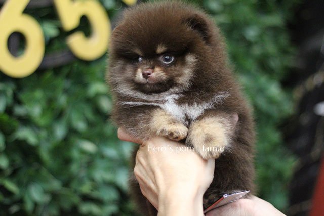Hero's pom ขายปอมเมอเรเนียน สีช็อกแทนเพศเมีย อายุ 2 เดือน สอบถาม Line : @heropom, 0985566777