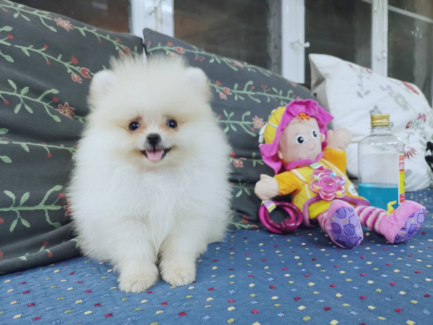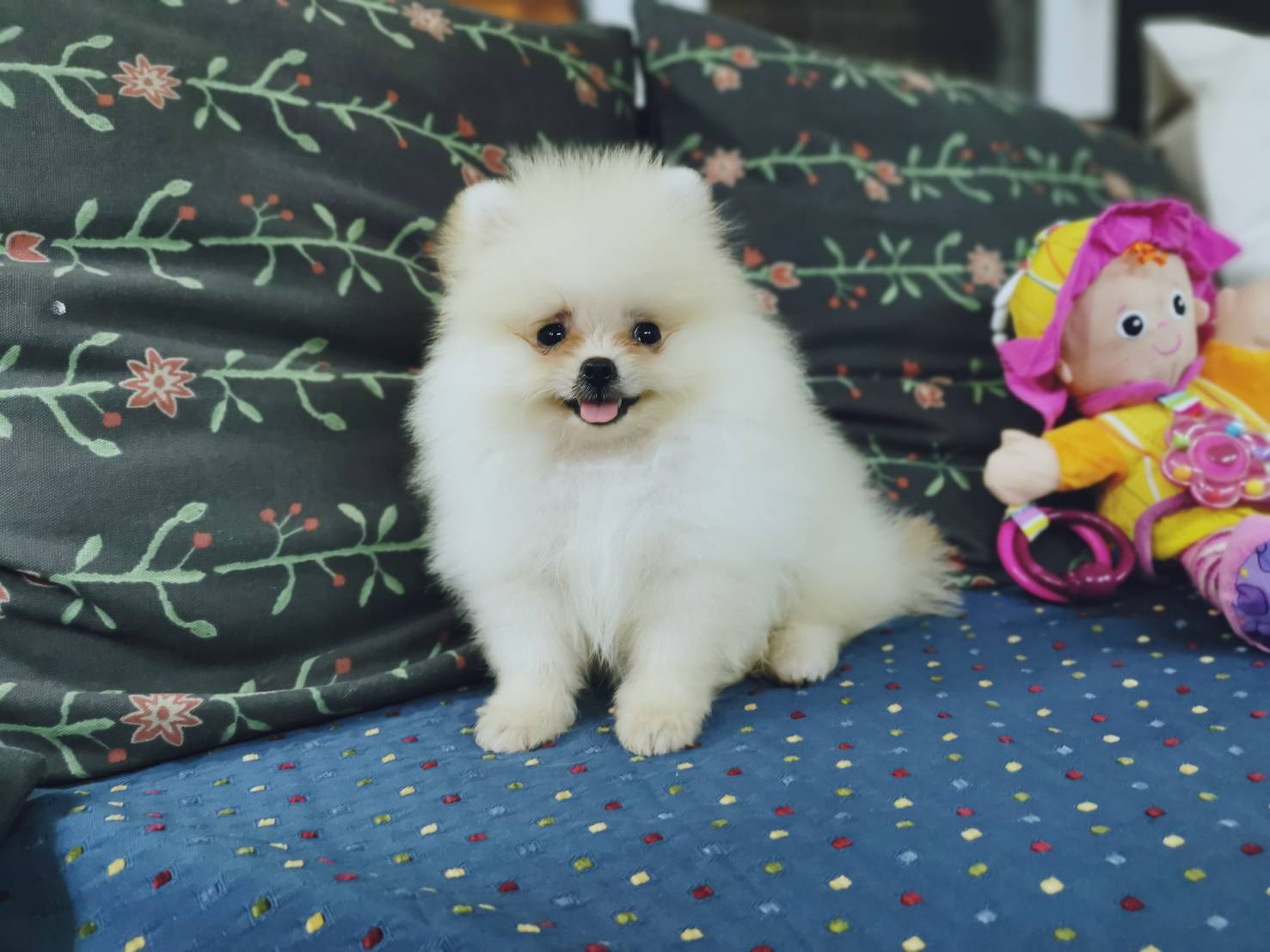 ขายปอมเมอเรเนียน ตัวผู้ สีครีม ขนแน่นไซด์เล็กน่ารัก อายุ 50 วัน