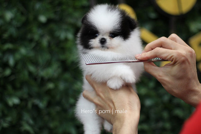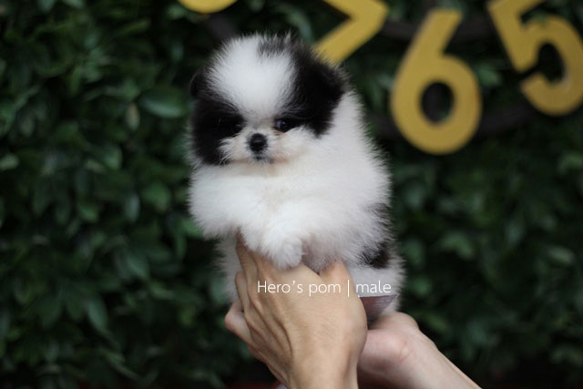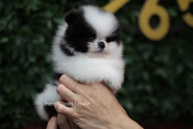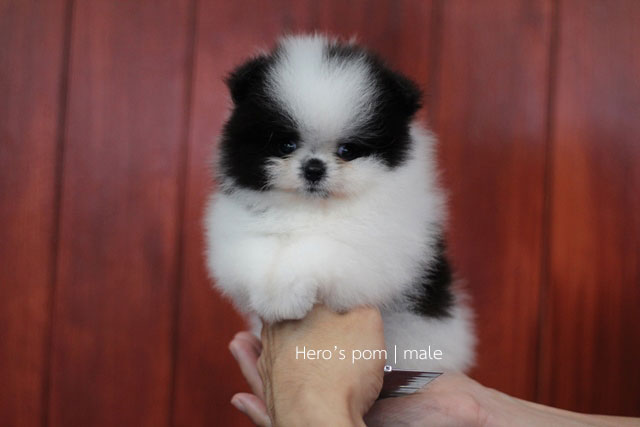 Hero's pom ขายปอมเมอเรเนียน สีขาวดำ เพศผู้ อายุ 2 เดือน สอบถาม Line : @heropom, 0985566777