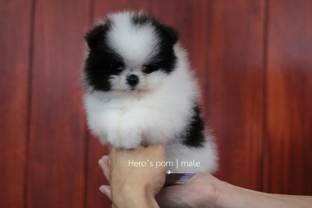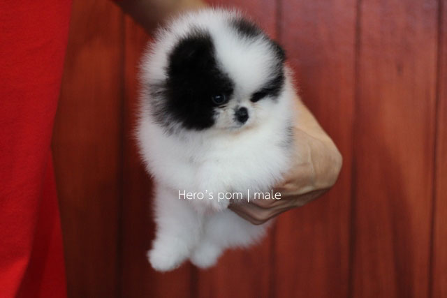 Hero's pom ขายปอมเมอเรเนียน สีขาวดำ เพศผู้ อายุ 2 เดือน สอบถาม Line : @heropom, 0985566777