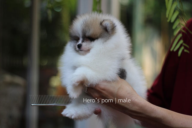 Hero's pom ขายปอมเมอเรเนียน สีปาร์ตี้ เพศผู้ อายุ 2 เดือน สอบถาม Line : @heropom, 0985566777
