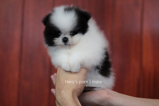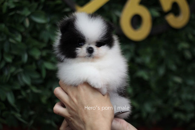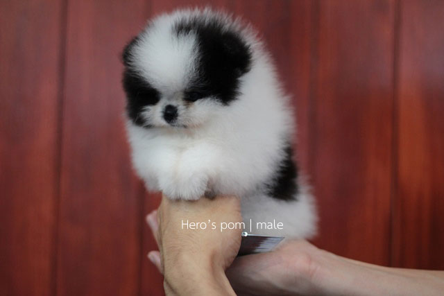 Hero's pom ขายปอมเมอเรเนียน สีขาวดำ เพศผู้ อายุ 2 เดือน สอบถาม Line : @heropom, 0985566777