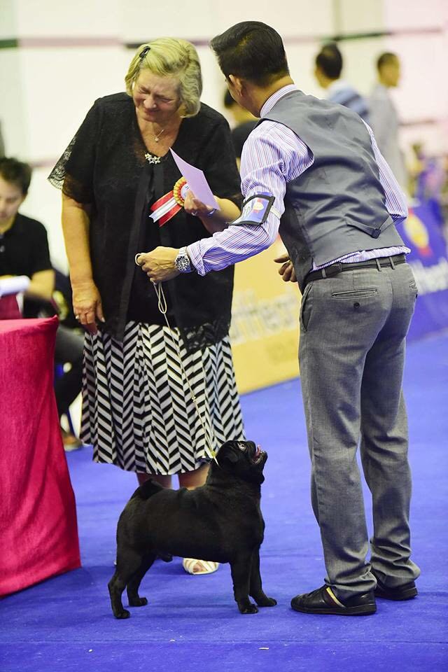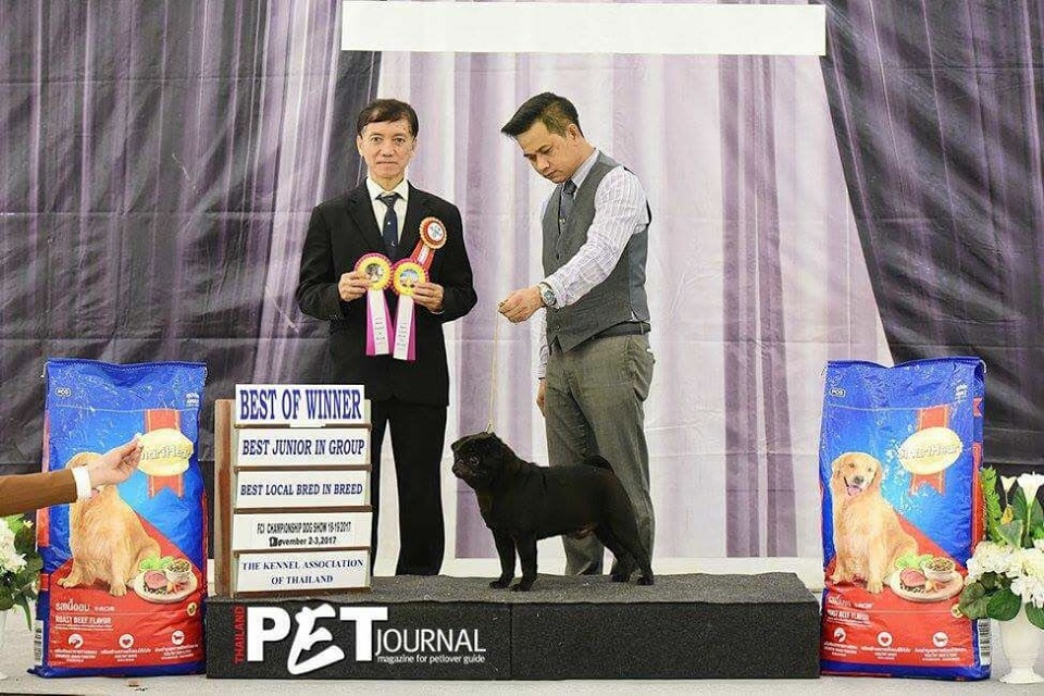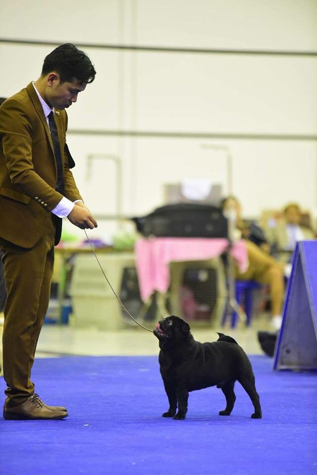 พ่อพันธุ์สุนัขปั๊กสีดำตำแหน่งแชมป์ประเทศไทยเปิดรับผสม