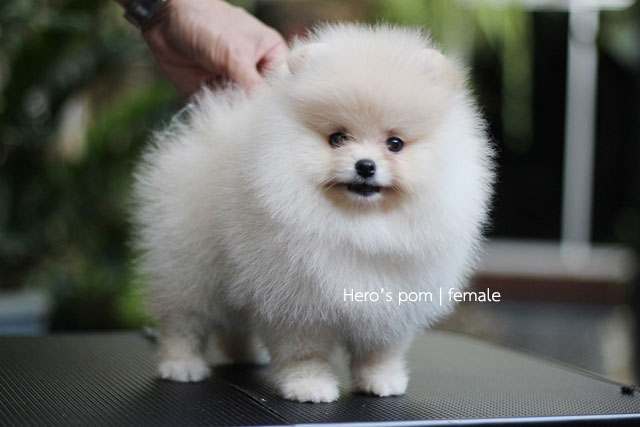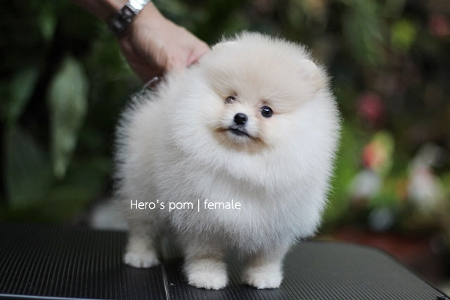 Hero's pom ขายปอมเมอเรเนียน สีครีม เพศเมีย อายุ 2 เดือน สอบถาม Line : @heropom, 0985566777