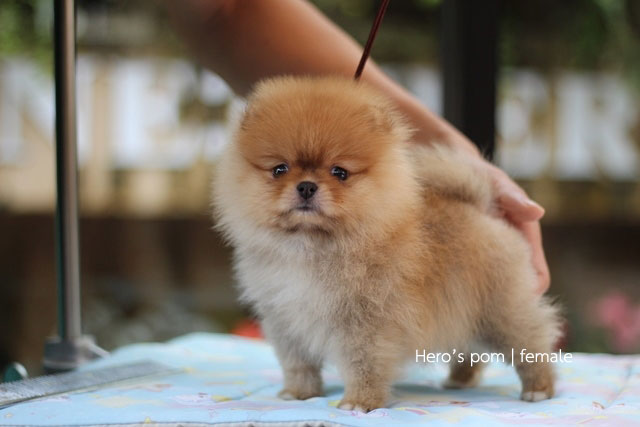 Hero's pom ขายปอมเมอเรเนียน สีส้ม เพศเมีย อายุ 2 เดือน สอบถาม Line : @heropom, 0985566777