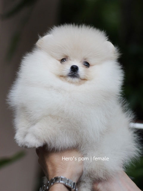 Hero's pom ขายปอมเมอเรเนียน สีครีม เพศเมีย อายุ 2 เดือน สอบถาม Line : @heropom, 0985566777