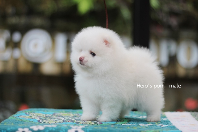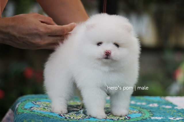 Hero's pom ขายปอมเมอเรเนียน สีขาว เพศผู้ อายุ 2 เดือน สอบถาม Line : @heropom, 0985566777