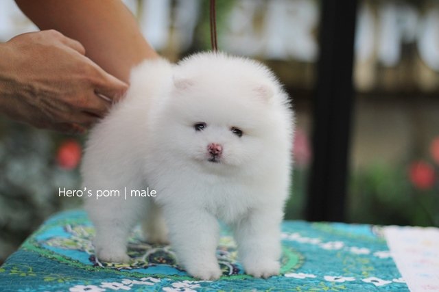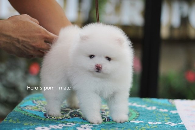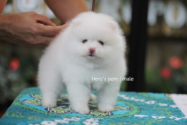 Hero's pom ขายปอมเมอเรเนียน สีขาว เพศผู้ อายุ 2 เดือน สอบถาม Line : @heropom, 0985566777