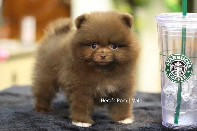 Hero's pom ขายปอมเมอเรเนียน สีช็อกแทน เพศผู้ อายุ 2 เดือน สอบถาม Line : @heropom, 0985566777