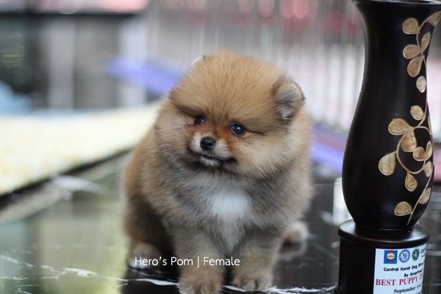 Hero's pom ขายปอมเมอเรเนียน สีส้ม เพศเมีย อายุ 2 เดือน สอบถาม Line : @heropom, 0985566777