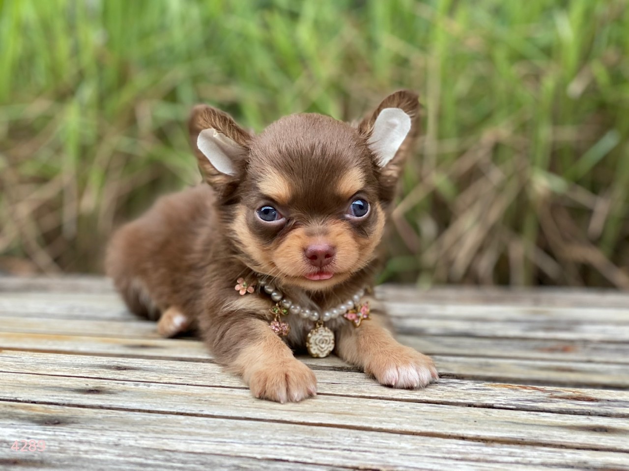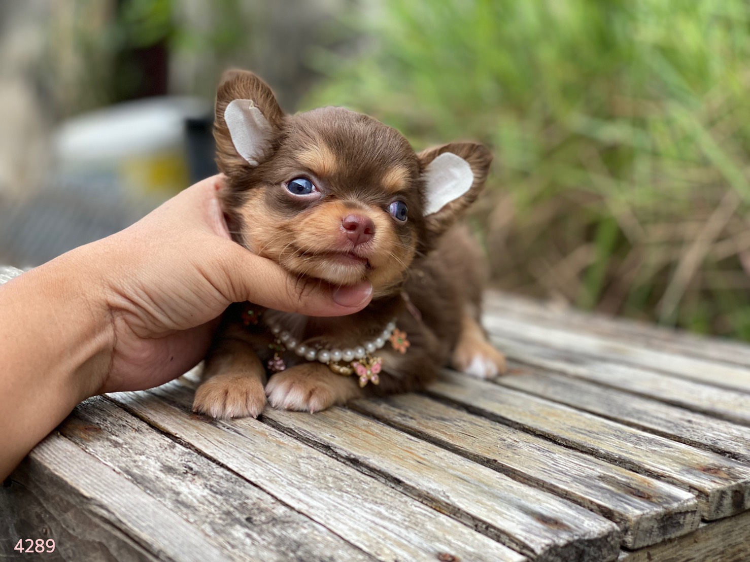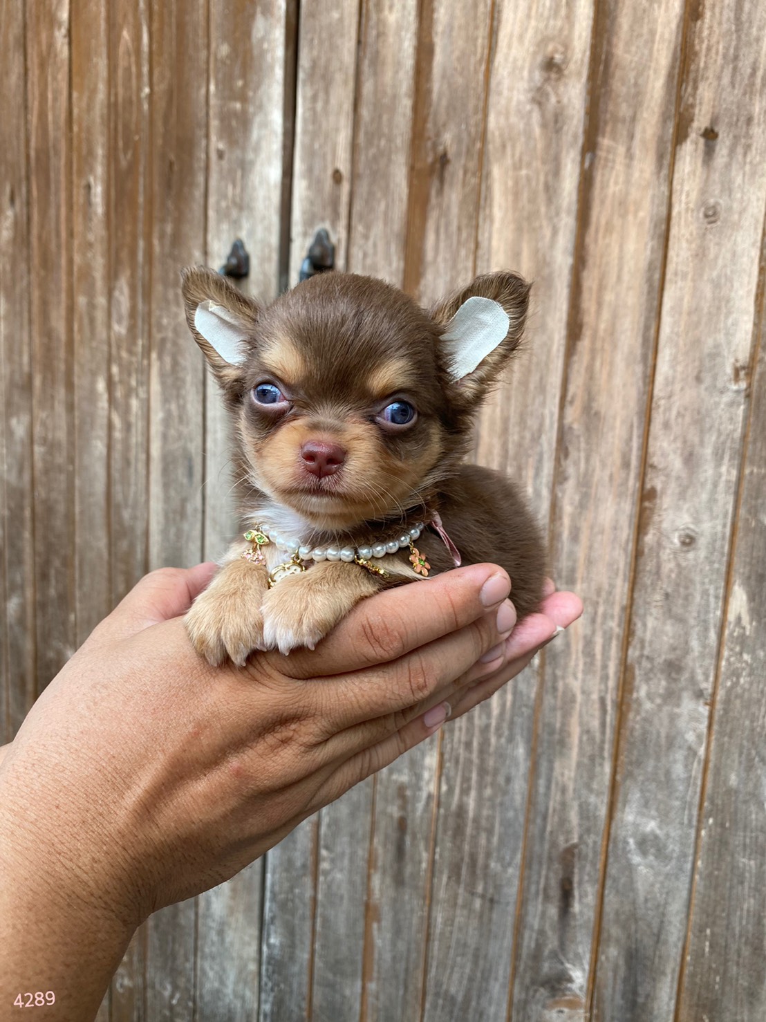 (ขายแล้ว)ชิวาวา เพศเมีย สีช็อกโกแลตแทน ขนยาว มี19นิ้ว หน้าแบ๊วๆโครงสร้างเยี่ยม สุขภาพแข็งแรง