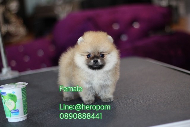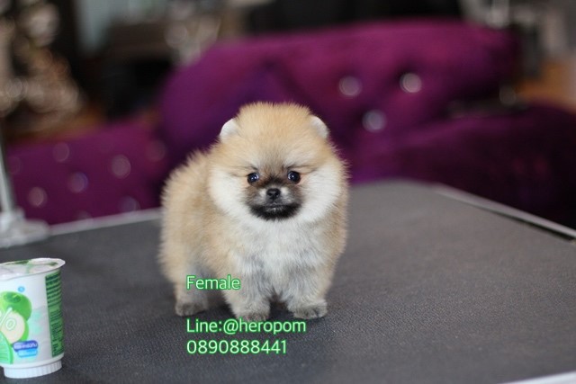 Hero's pom ขายปอมเมอเรเนียน สีส้ม เพศเมีย อายุ 2 เดือน สอบถาม Line : @heropom, 0985566777