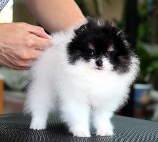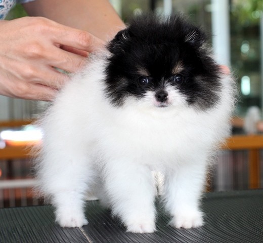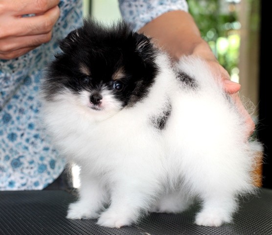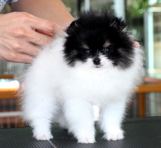 Hero's pom ขายปอมเมอเรเนียน สีขาวดำ เพศเมีย อายุ 2 เดือน สอบถาม Line : @heropom, 0985566777