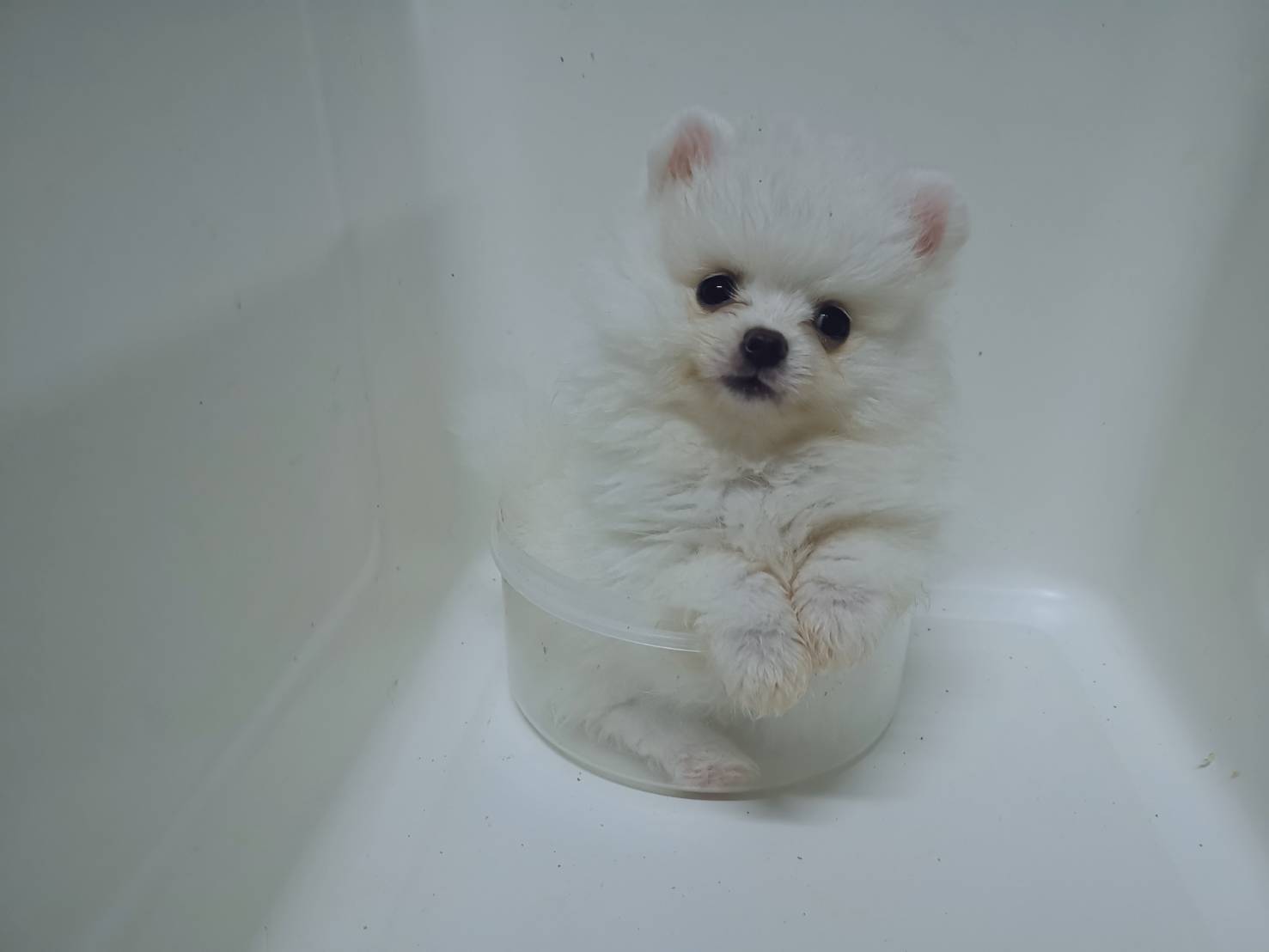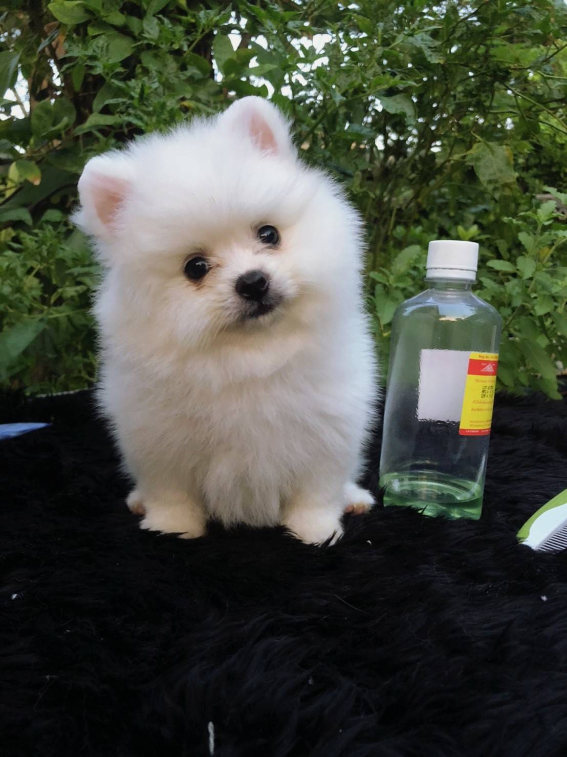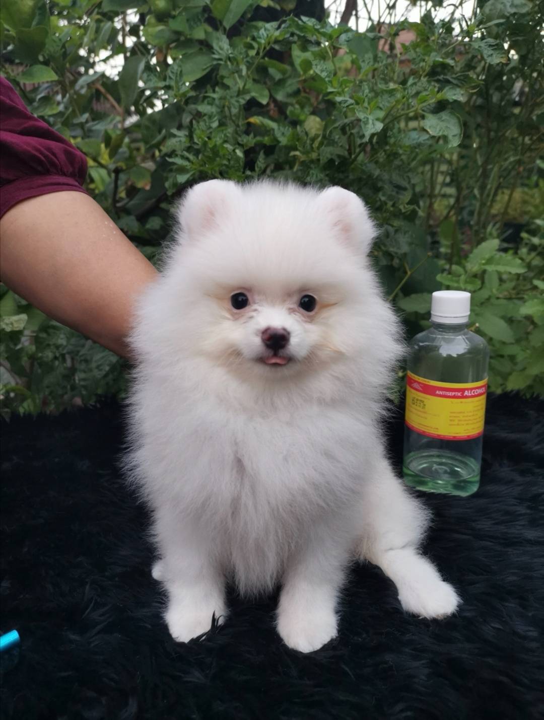 ขายลูกสุนัข ปอมเมอเรเนียล สีขาว อายุ สองเดือนครึ่ง size เล็ก เตี้ย อ้วน สั้น