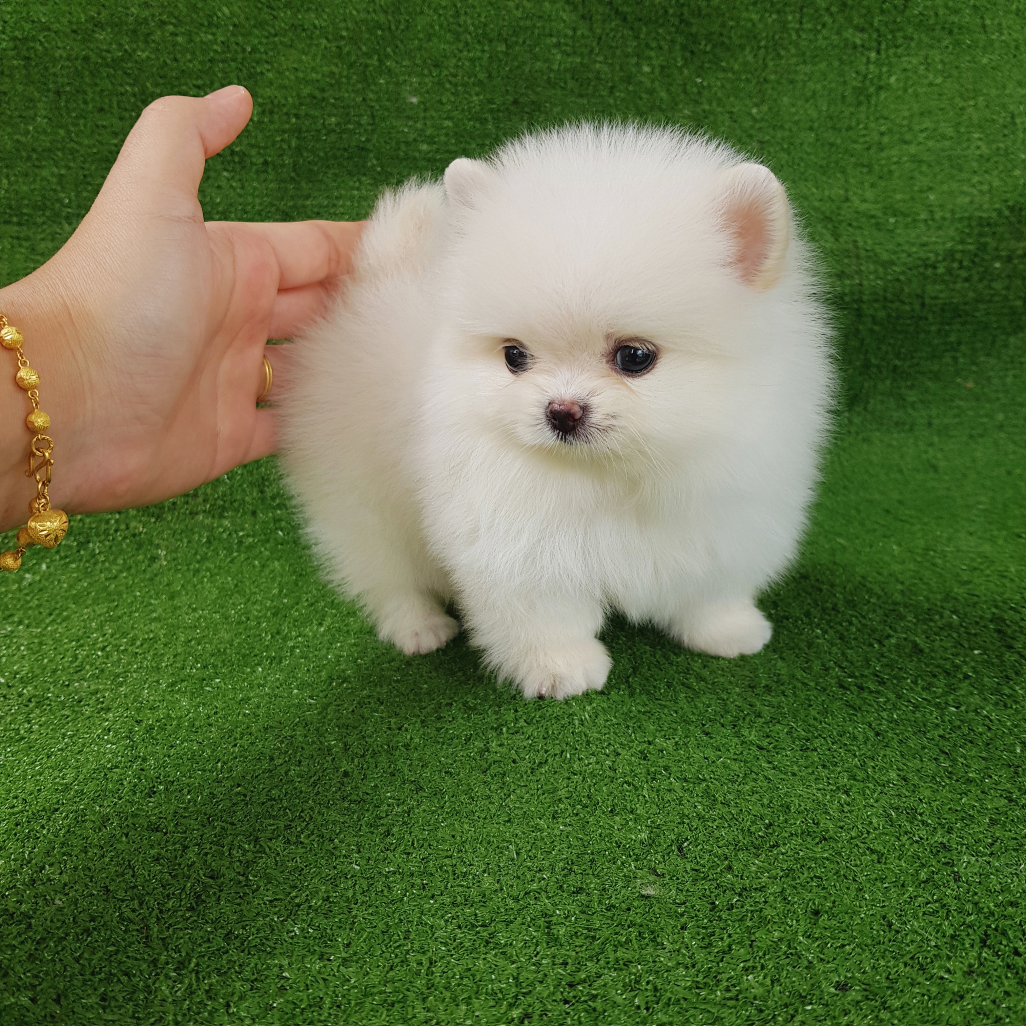 ปอมเมอเรเนี่ยนเพศเมียหน้าหมีสีขาวสำลี เพ็ดเต็มใบ 4 สาว