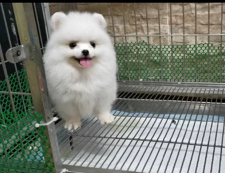 ขายปอมเมอเรเนียน สีขาว เพศเมีย หน้าหมี อายุ 2 เดือน วัคซีน 1 เข็มถ่ายพยาธิแล้ว