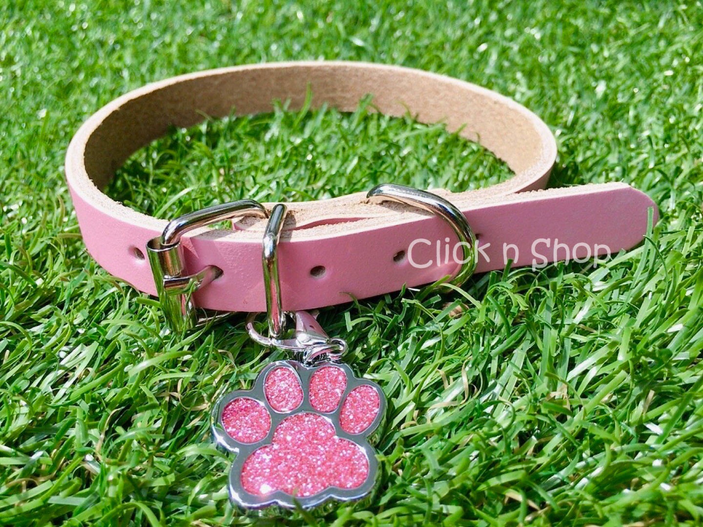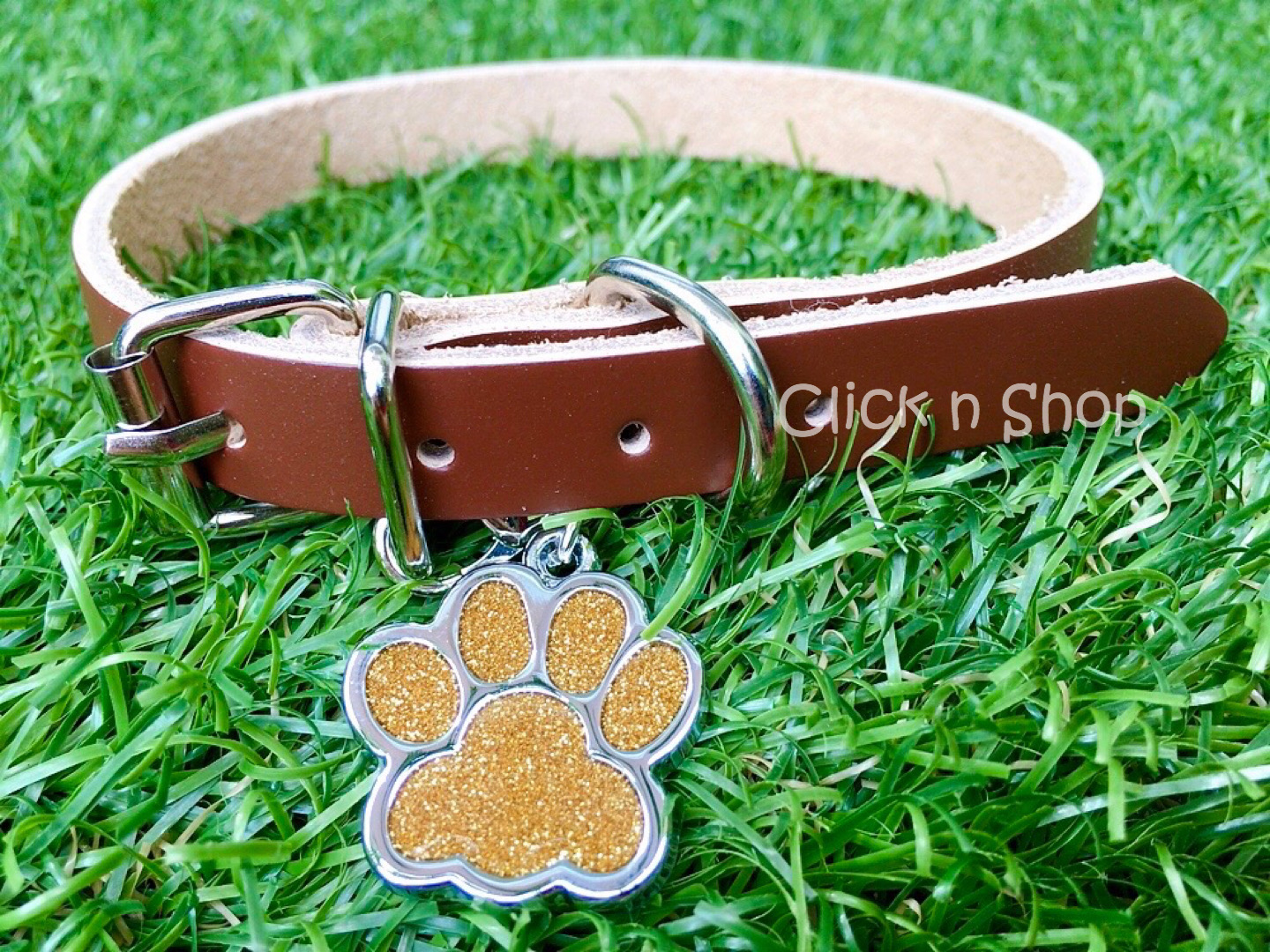 เซ็ทปลอกคอสุนัข สำหรับลูกสุนัขและสุนัขขนาดเล็ก ทำจากหนังแท้ 100% เกรดพรีเมียม พร้อมจี้อุ้งเท้าน้องหมาวิ้งวาววับ...สวยหรู