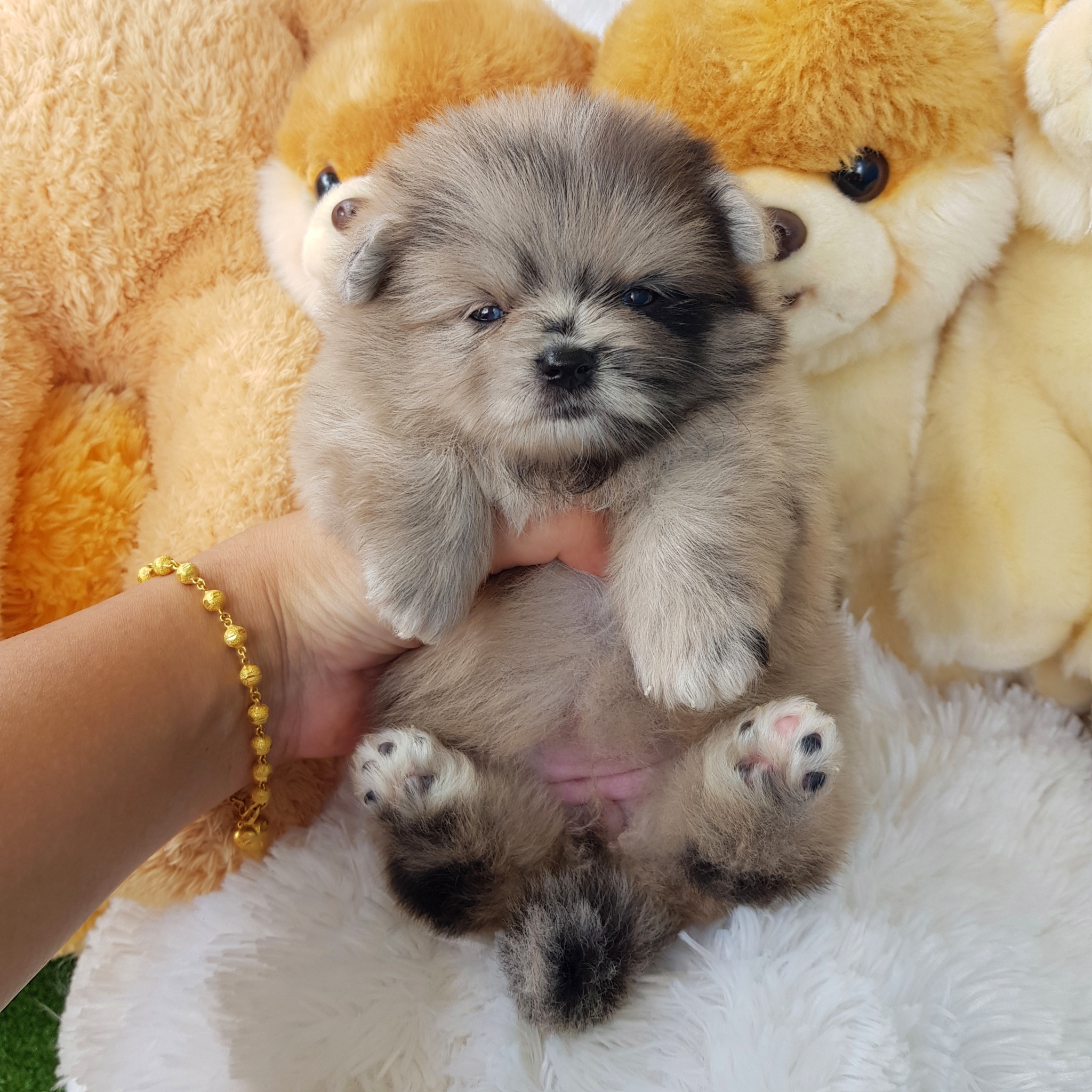ปอมเมอเรเนี่ยนสีเมิร์ล เพศเมียสองสาวสีสวยๆ หายาก เพ็ดเต็มใบ