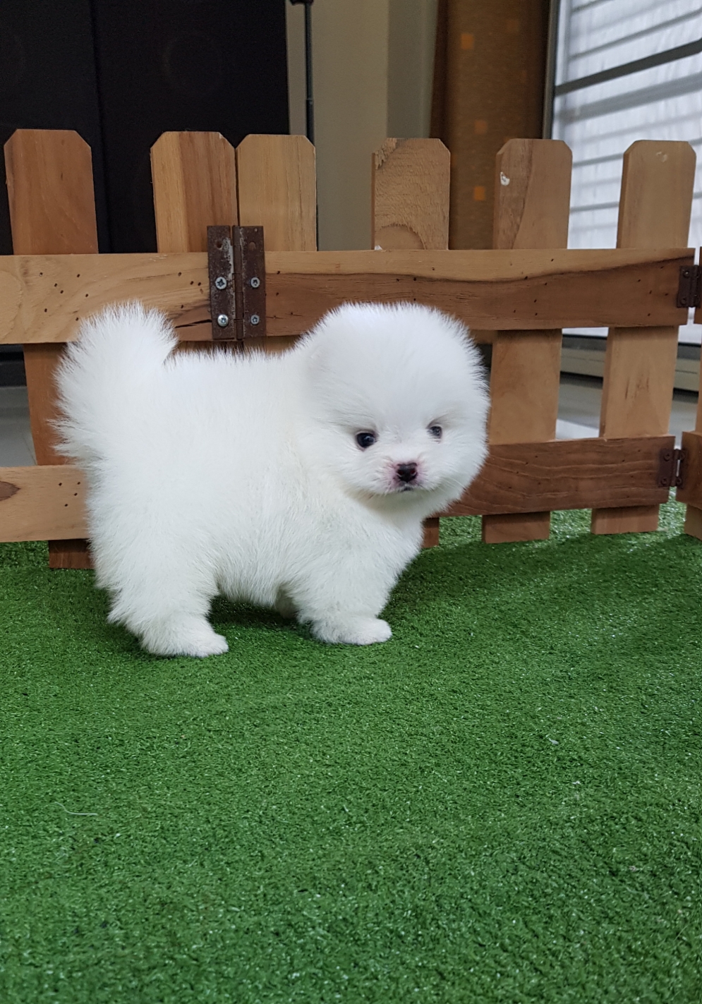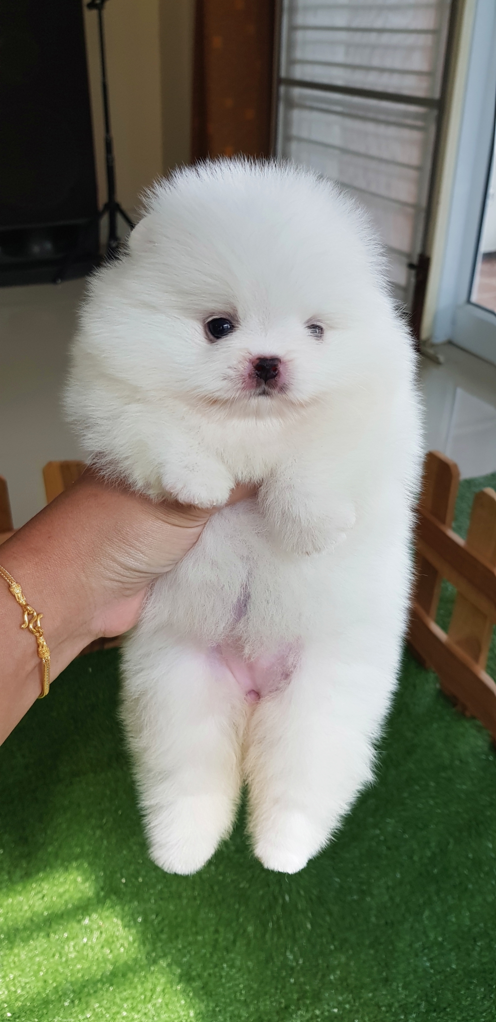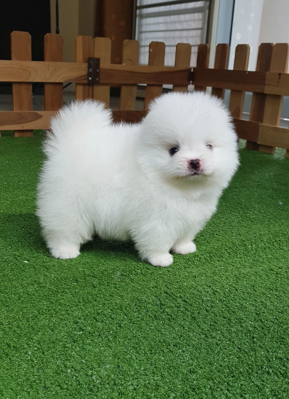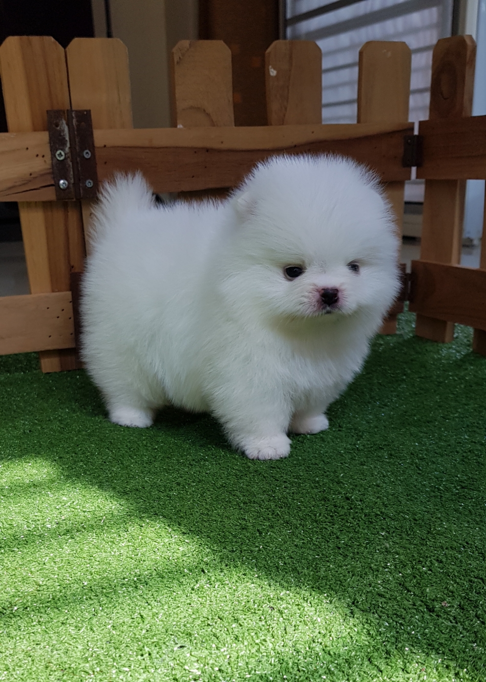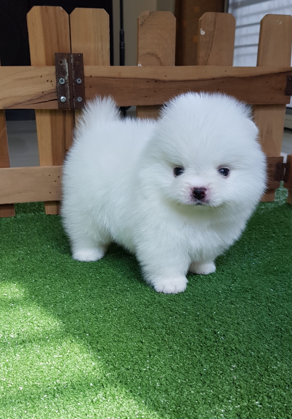ปอมเมอเรเนี่ยนเพศเมียหน้าหมีสีขาวสำลี เพ็ดเต็มใบ
